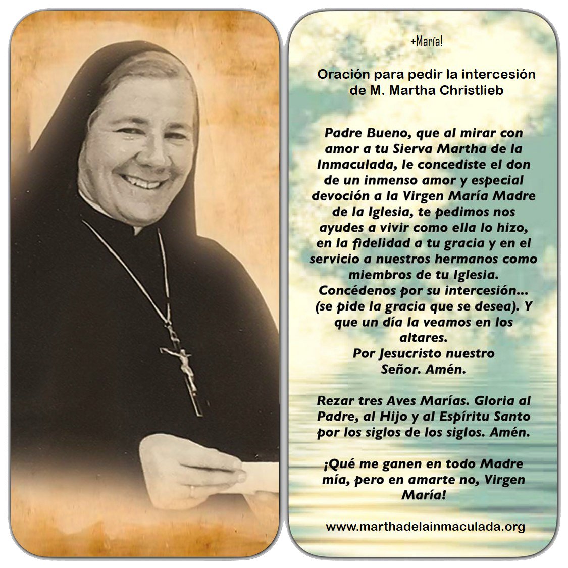 El proceso de canonización de la Sierva de Dios Madre Martha Christlieb Ibarrola, svcfe, se inició formalmente el 16 de enero del 2003.